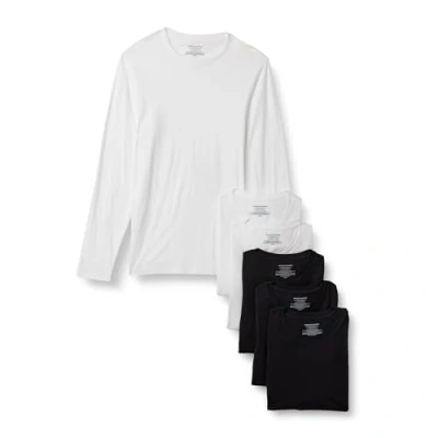 Amazon Essentials Men's Cotton Long Sleeve Undershirt, Pack of 6, Black/White, L