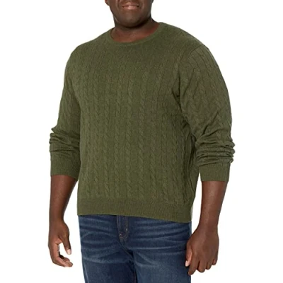 Amazon Essentials Men's Crewneck Cable Cotton Jumper, Olive Heather, XXL