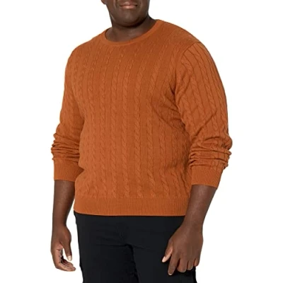 Amazon Essentials Men's Crewneck Cable Cotton Jumper, Rust, S