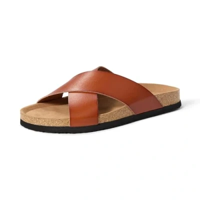 COMFORT AND FIT: These crossover sandals have a padded insole with high-quality memory foam for added comfort and an open back for a flexible fit. MATERIAL: Amazon Essentials sandals are made from high-quality alternative leather materials. STYLE: These sandals feature a modern slide-style upper on a cork sole. DESIGN: These versatile sandals take you anywhere and can be paired with your favorite Amazon Essentials outfit.