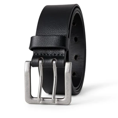 COMFORT AND FIT: This men’s belt has 7 rows of holes for flexible sizing MATERIAL: Amazon Essentials belts are made from high-quality leather. Leather is a natural product with unique characteristics that can vary from belt to belt STYLE: This double-pronged belt features a burnished nickle buckle and has a polished yet relaxed aesthetic DETAILS: 1.2” (3.1cm) wide