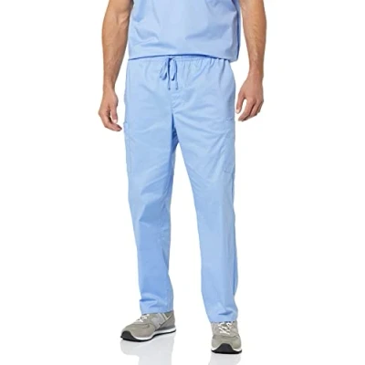 REGULAR FIT: Comfortable, easy fit through the hip and thigh with a straight leg. Sits at the waist STRETCH SCRUBS FABRIC: Sturdy, stretch-cotton blend fabric that features a wicking finish SCRUB PANT: This straight-leg, classic, pull-on scrub trouser offers lots of pockets. Match back to the Amazon Essentials Men's V-Neck Scrub Top with Pockets for a full uniform DETAILS: Features front, back and double side pockets, elastic pull-on waist and functional drawcord