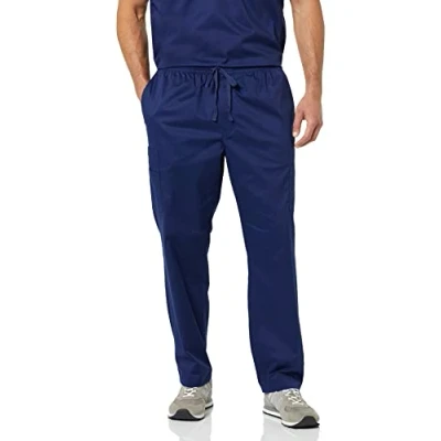 REGULAR FIT: Comfortable, easy fit through the hip and thigh with a straight leg. Sits at the waist STRETCH SCRUBS FABRIC: Sturdy, stretch-cotton blend fabric that features a wicking finish SCRUB PANT: This straight-leg, classic, pull-on scrub trouser offers lots of pockets. Match back to the Amazon Essentials Men's V-Neck Scrub Top with Pockets for a full uniform DETAILS: Features front, back and double side pockets, elastic pull-on waist and functional drawcord