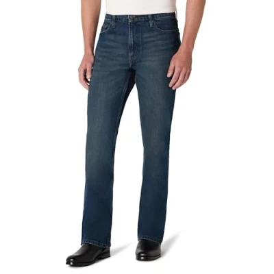 STRAIGHT FIT: Fitted through the hip and thigh with a bootcut leg. Sits at the waist HEAVYWEIGHT LOW-STRETCH DENIM: Tough, durable denim with a hint of stretch for comfort and ease of movement. Structured, substantial fabric keeps its shape even after multiple washes. BOOTCUT JEAN: Combining a classic bootcut silhouette with a modern denim fabrication allowing ease of movement, these jeans offer both style and comfort for daily wear DETAILS: Zip fly with shank button closure. 5 pocket styling. Rivets provide strength and authentic detailing at front and coin pocket corners. GARMENT LEG OPENING: 9” (22.9cm), FRONT RISE: 11 1/2” (29.2cm) on UK size 34W