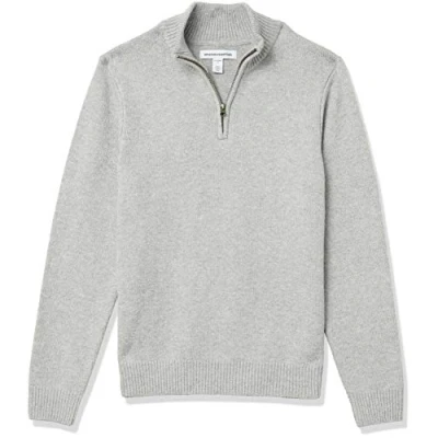 Amazon Essentials Men's Long Sleeve Soft Touch Quarter Zip Jumper, Light Grey, XXL