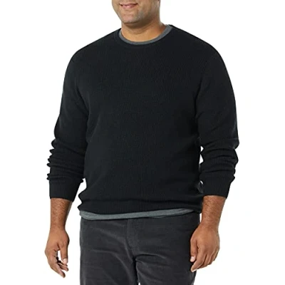 Amazon Essentials Men's Long Sleeve Soft Touch Waffle Stitch Crewneck Jumper, Black, S