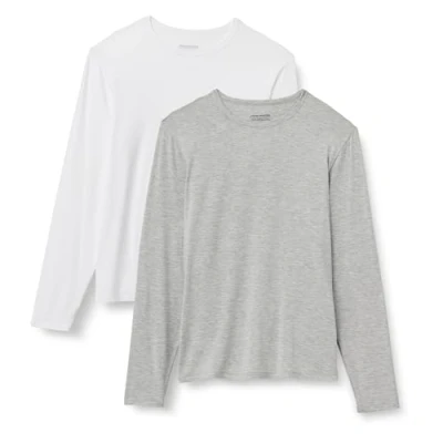 Amazon Essentials Men's Long Sleeve Super Soft Modal Vest, Pack of 2, Medium Grey Heather/White, S