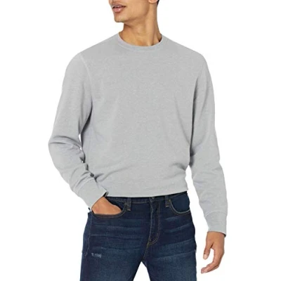 Amazon Essentials Men's Long Sleeved Lightweight Fleece French Terry Crew Neck Sweatshirt, Light Grey Heather, S