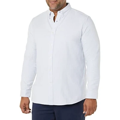 Amazon Essentials Men's Long Sleeved Regular fit Stretch Oxford Shirt (Available in Big & Tall), Powder Blue Vertical Stripes, S
