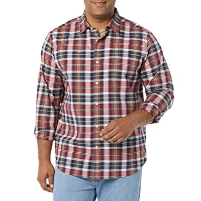 Amazon Essentials Men's Long Sleeved Regular Fit Stretch Poplin Shirt, Red White Plaid, XXL