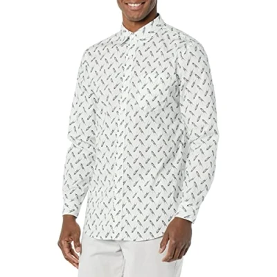 SLIM FIT: Slim fit through the shoulders, chest, and waist. STRETCH POPLIN: Lightweight and durable washed poplin with 2% stretch for comfort and mobility, a fabric for all seasons. EVERYDAY SHIRTING: With classic shirting details, this long sleeve poplin shirt is the perfect year-round wardrobe staple. Designed to be tucked in for a more polished look or untucked for a laid back yet sophisticated look. Versatile enough to be worn with jeans, chinos, or shorts. DETAILS: Spread collar construction, center front placket with button closure, adjustable barrel cuffs, and shirttail hem.