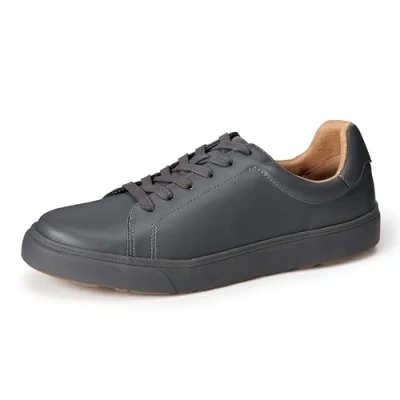 COMFORT AND FIT: These classic trainers feature a lace-up closure, padded collar and latex padded insoles that provide comfort during all-day wear MATERIAL: Amazon Essentials shoes are made from high-quality alternative leather materials. This style has a faux leather upper STYLE: These polished faux leather trainers transition seamlessly from office wear to casual outings