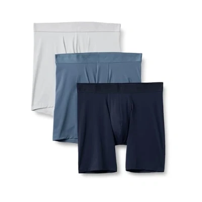 Amazon Essentials Men's Microfibre 7" (17.8cm) Boxer Shorts Underwear, Pack of 3, Blue/Light Grey/Navy Blue, S