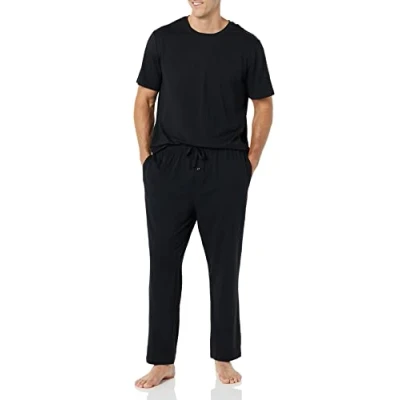 Amazon Essentials Men's Modal Cotton T Shirt and Full Length Bottoms Pyjama Set, Black, XXS