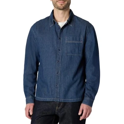 Amazon Essentials Men's Modern Oversized Fit Denim Button Down Shirt, Medium Blue Vintage, S