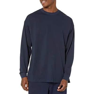 Amazon Essentials Men's Oversized Long Sleeved Organic Cotton T Shirt, Navy, 4XL Plus