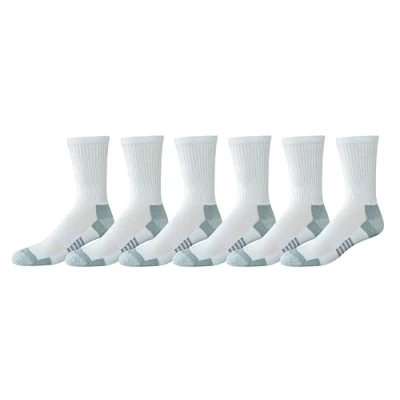 Amazon Essentials Men's Performance Cotton Moisture Control Socks, Athletic Crew, Breathable, 6 Pairs, White, 12 14