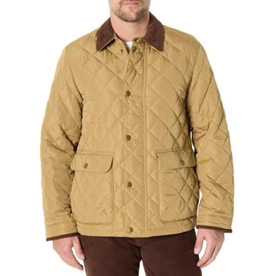 RELAXED FIT: Relaxed fit through the shoulders, chest and waist GARMENT LENGTH: 29 1/2” (74.9cm) from side neck on UK size M WATER-REPELLENT POLYESTER TAFFETA: Midweight quilted coat. Quilted and insulated DETAILS: Classic diamond quilting pattern, hidden front zip with snap closure, patch pockets with flap and side entry, interior patch pocket, contrast corduroy collar and corduroy-lined cuffs for a turnback detail