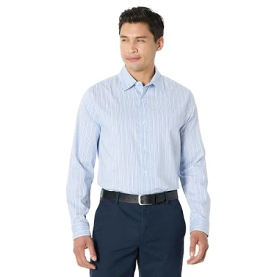 Amazon Essentials Men's Regular Fit Long Sleeve Stretch Dress Shirt, Blue White Pinstripe, S