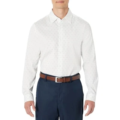 Amazon Essentials Men's Regular Fit Long Sleeve Stretch Dress Shirt, Navy White Diamond Geo, S