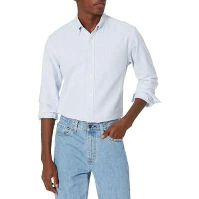Amazon Essentials Men's Regular Fit Long Sleeved Oxford Shirt, Blue Stripes, L