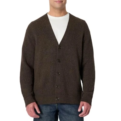 Amazon Essentials Men's Relaxed Fit Cotton Blend Cardigan, Chocolate Heather, M