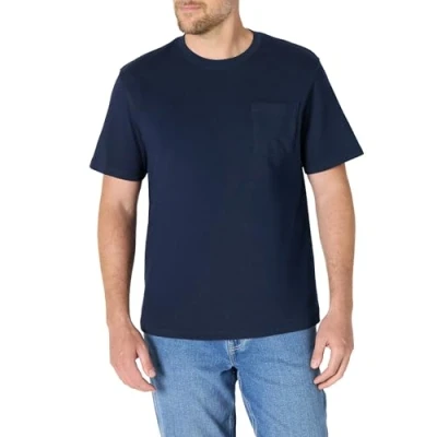 Amazon Essentials Men's Relaxed Fit Heavyweight Cotton Pocket T Shirt, Navy, S