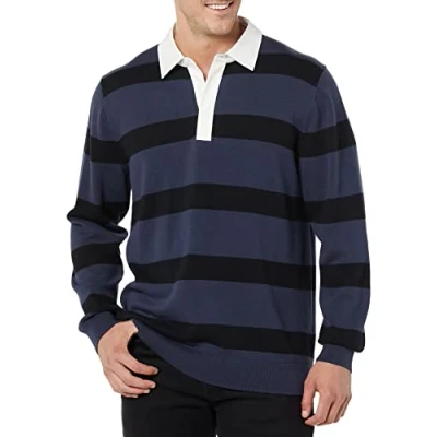 Amazon Essentials Men's Rugby Sweater, Dark Navy Stripes, S