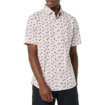 Amazon Essentials Men's Short Sleeve Stretch Poplin Shirt (Available in Big & Tall), Light Pink Palm Leaf Print, XL