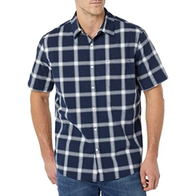 Amazon Essentials Men's Short Sleeve Stretch Poplin Shirt (Available in Big & Tall), Navy White Buffalo Plaid, S
