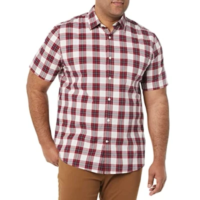 Amazon Essentials Men's Short Sleeve Stretch Poplin Shirt (Available in Big & Tall), Red White Plaid, S