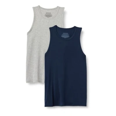 Amazon Essentials Men's Sleeveless Super Soft Modal Vest, Pack of 2, Medium Grey Heather/Navy, S
