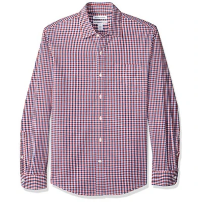 Amazon Essentials Men's Slim Fit Long Sleeve Poplin Shirt, Blue Red Gingham, XXL