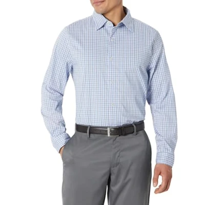 Amazon Essentials Men's Slim Fit Long Sleeve Stretch Dress Shirt, White Grid Check, L