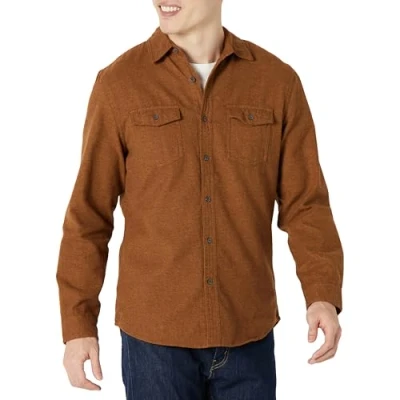 Amazon Essentials Men's Slim Fit Long Sleeve Two Pocket Flannel Shirt, Toffee Brown, XS
