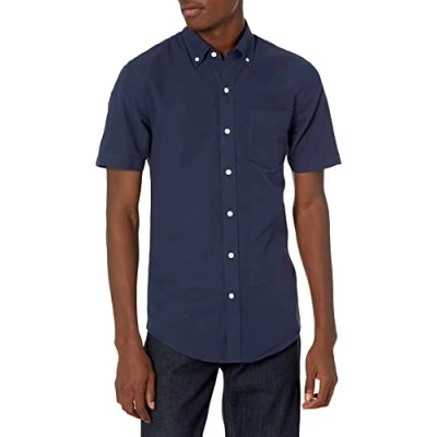 Amazon Essentials Men's Slim Fit Short Sleeve Pocket Oxford Shirt, Navy, L