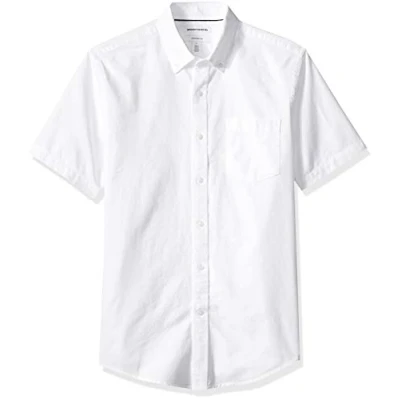 Amazon Essentials Men's Slim Fit Short Sleeve Pocket Oxford Shirt, White, L