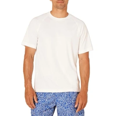 SLIM FIT: True-to-size, slim fit through the shoulders, sleeves, chest and waist – ideal for swimming SWIM TEE: This flexible swim shirt is designed for all-day comfort and mobility. Perfect for a variety of outdoor activities, including swimming, aquatic sports, sailing, fishing and hiking DETAILS: Designed with short sleeves, raglan seams and exposed flat seaming throughout to avoid irritation and prevent chafing while maintaining shape and performance wash after wash PERFORMANCE FABRIC: This light and breathable quick-dry fabric has gentle stretch for improved mobility. Stay cool and comfortable with moisture-wicking properties. UPF 50 shields skin from harmful ultraviolet rays