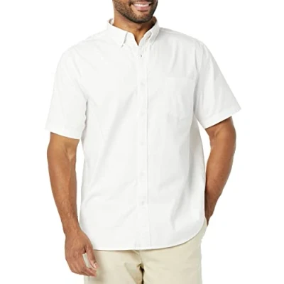 Amazon Essentials Men's Slim Fit Short Sleeved Stretch Oxford Shirt with Pocket, White, S