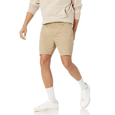 Amazon Essentials Men's Straight fit 7" Inseam Stretch 5 Pocket Shorts, Khaki Brown, 38W