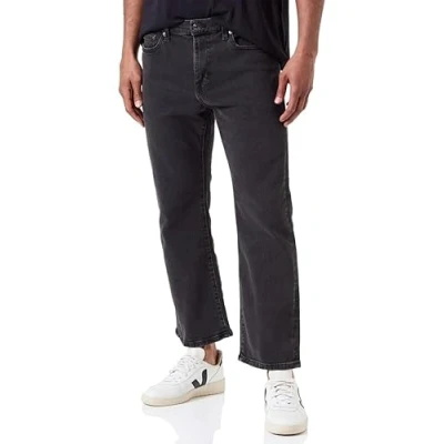 Amazon Essentials Men's Straight Fit Stretch Jean, Black, 33W / 32L