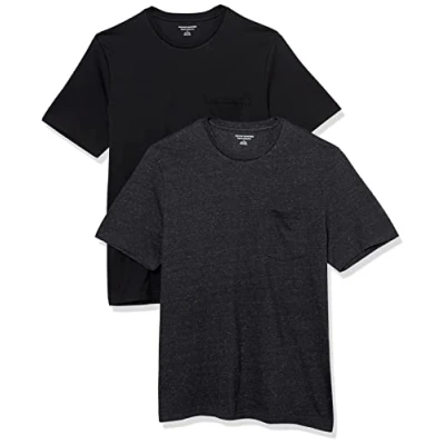 Amazon Essentials Men's T Shirt Regular Fit Short Sleeve Crewneck Pocket, Pack of 2, Black/Charcoal Heather, S