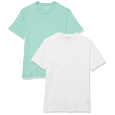Amazon Essentials Men's T Shirt Slim Fit Short Sleeve Crewneck, Pack of 2, Aqua Blue/White, XXL