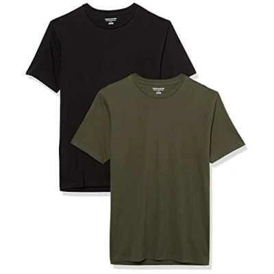 Amazon Essentials Men's T Shirt Slim Fit Short Sleeve Crewneck, Pack of 2, Black/Olive, S