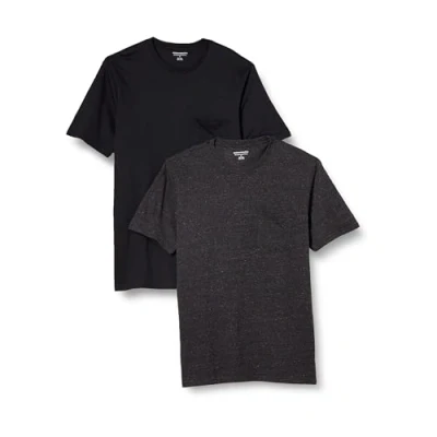Amazon Essentials Men's T Shirt Slim Fit Short Sleeved Crewneck Pocket, Pack of 2, Black/Charcoal Heather, XXL