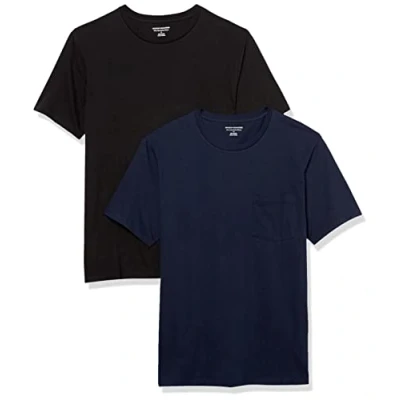 Amazon Essentials Men's T Shirt Slim Fit Short Sleeved Crewneck Pocket, Pack of 2, Black/Navy, M