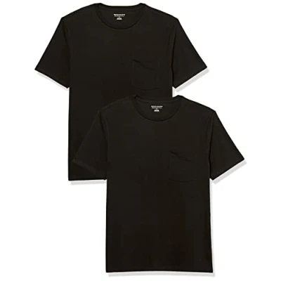 Amazon Essentials Men's T Shirt Slim Fit Short Sleeved Crewneck Pocket, Pack of 2, Black, S