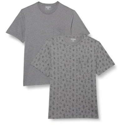 Amazon Essentials Men's T Shirt Slim Fit Short Sleeved Crewneck Pocket, Pack of 2, Grey Heather Cactus, S
