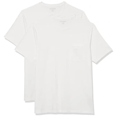 Amazon Essentials Men's T Shirt Slim Fit Short Sleeved Crewneck Pocket, Pack of 2, White, XS