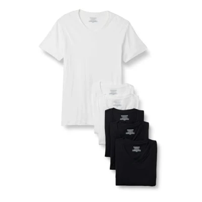 Amazon Essentials Men's V Neck Undershirt, Breathable, Cotton, Pack of 6, Black/White, S